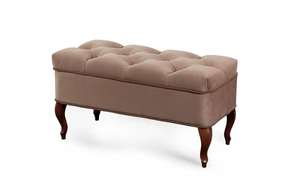 Каретная стяжка на высококачественном велюре, декоративные канты, опоры "кабриоль" из натуральной древесины (береза) сделают банкетку №15 изюминкой Вашего интерьера.