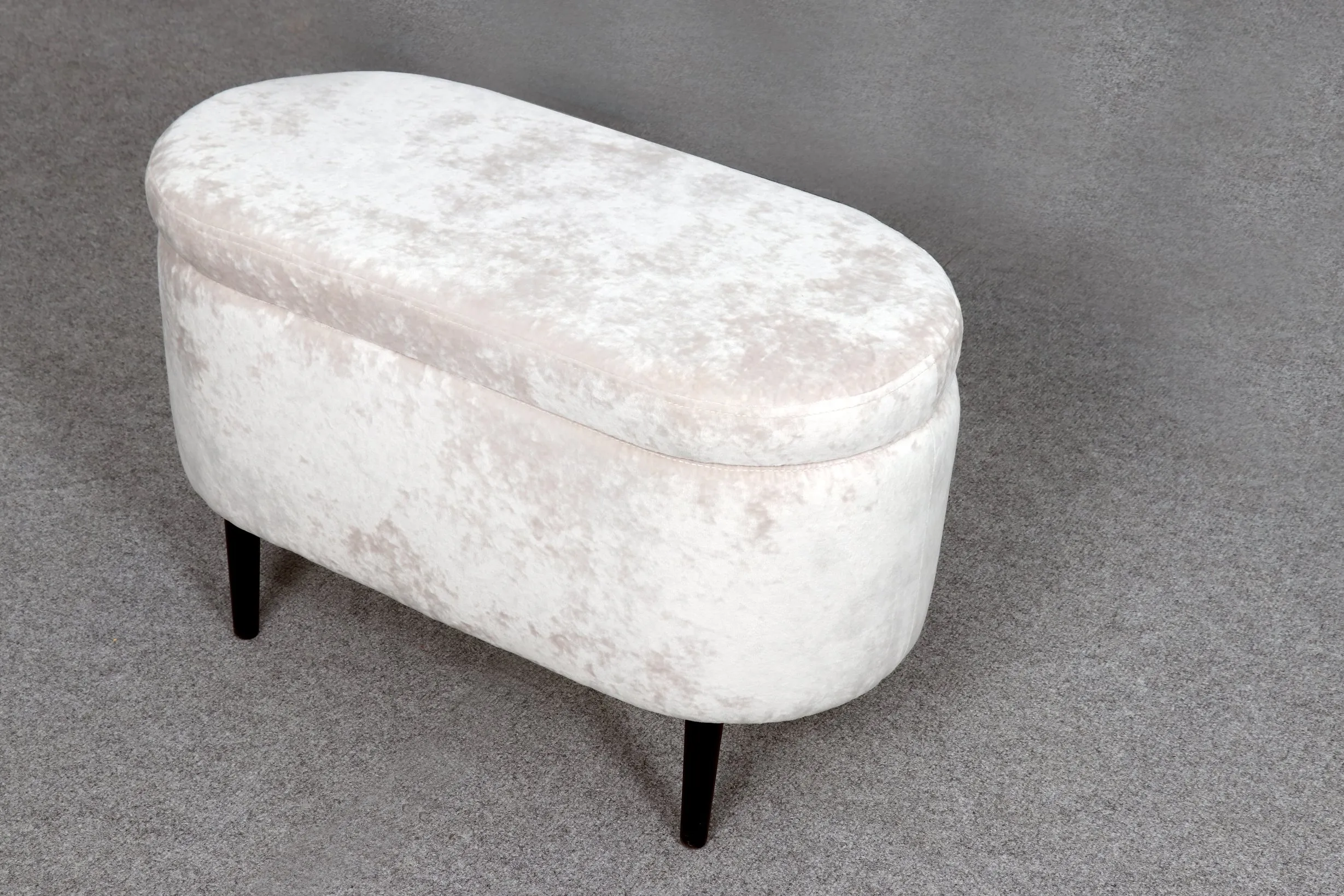 Мягкая обивка в ткани велюр с краш-эффектом добавляет приятный объем и украшает изделие. Опоры выполнены из массива берёзы и имеют защитные войлочные наклейки. Банкетка хороша не только в гостиной, но и в спальне, на кухне и в детской комнате. Максимальная нагрузка 100 кг.