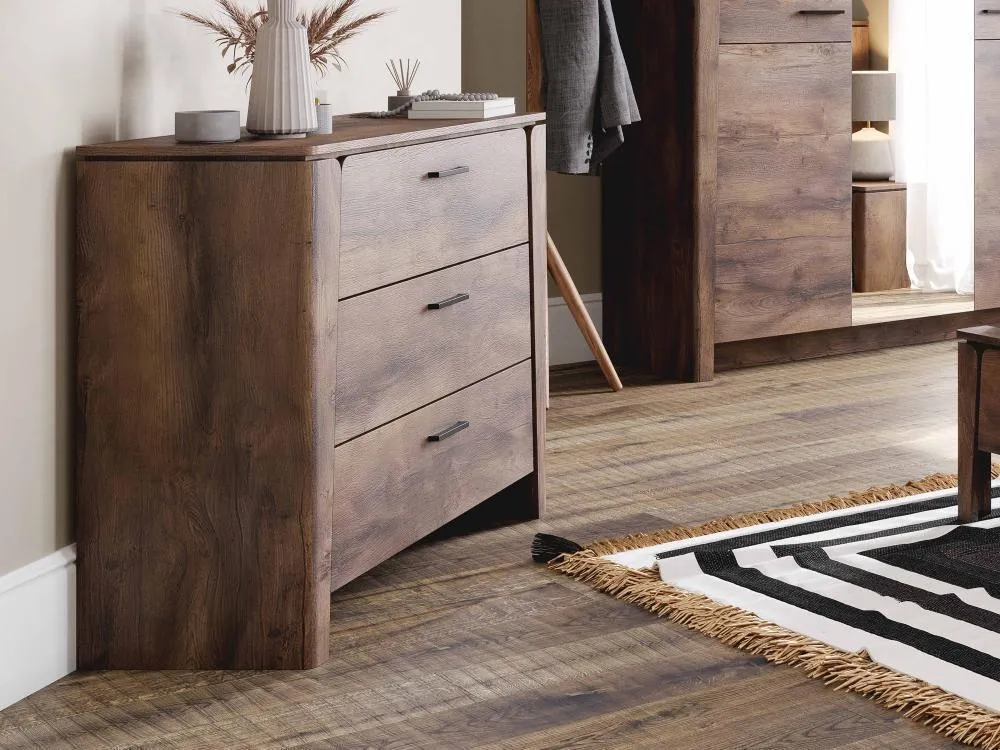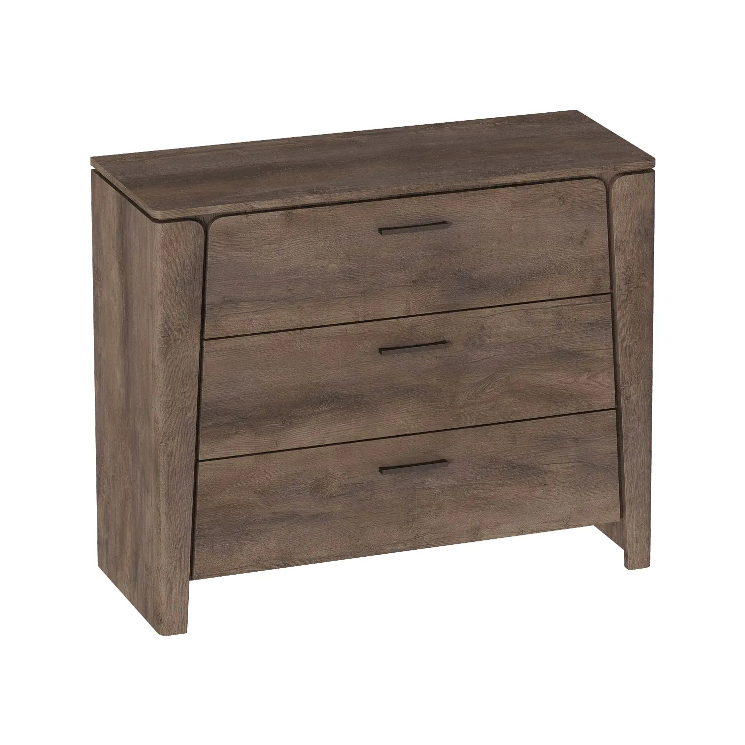 Вместительность комода обеспечивает три выдвижных ящика, которые идеально подходят для хранения одежды, постельного белья и других личных вещей. Каждый ящик оборудован шариковыми направляющими, обеспечивающими плавный и бесшумный ход при использовании. Благодаря этому, вы сможете быстро и без лишних усилий найти нужную вещь и так же легко вернуть ящик на место.