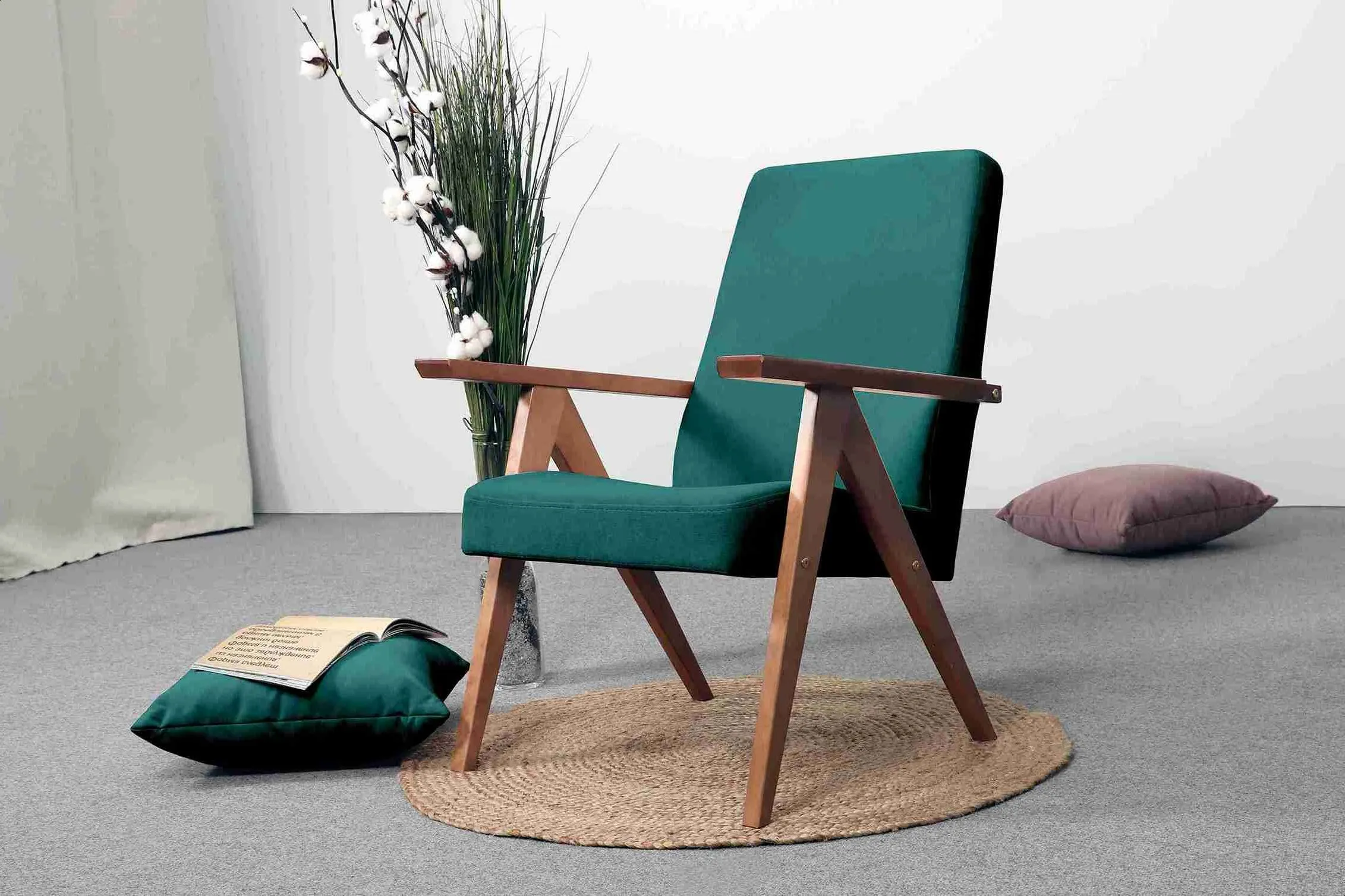 Кресло имеет простой и элегантный силуэт. Оно выполнено в уникальном ретро дизайне и доступно в нескольких цветовых вариантах, что позволяет выбрать наиболее подходящее для вашего дома.