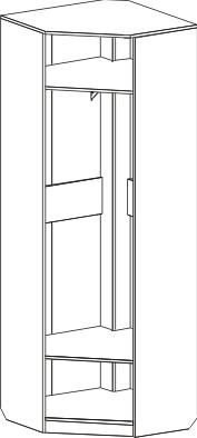 Угловой шкаф "Элана" имеет стационарные полки и платяное отделение с выдвижной стальной штангой.