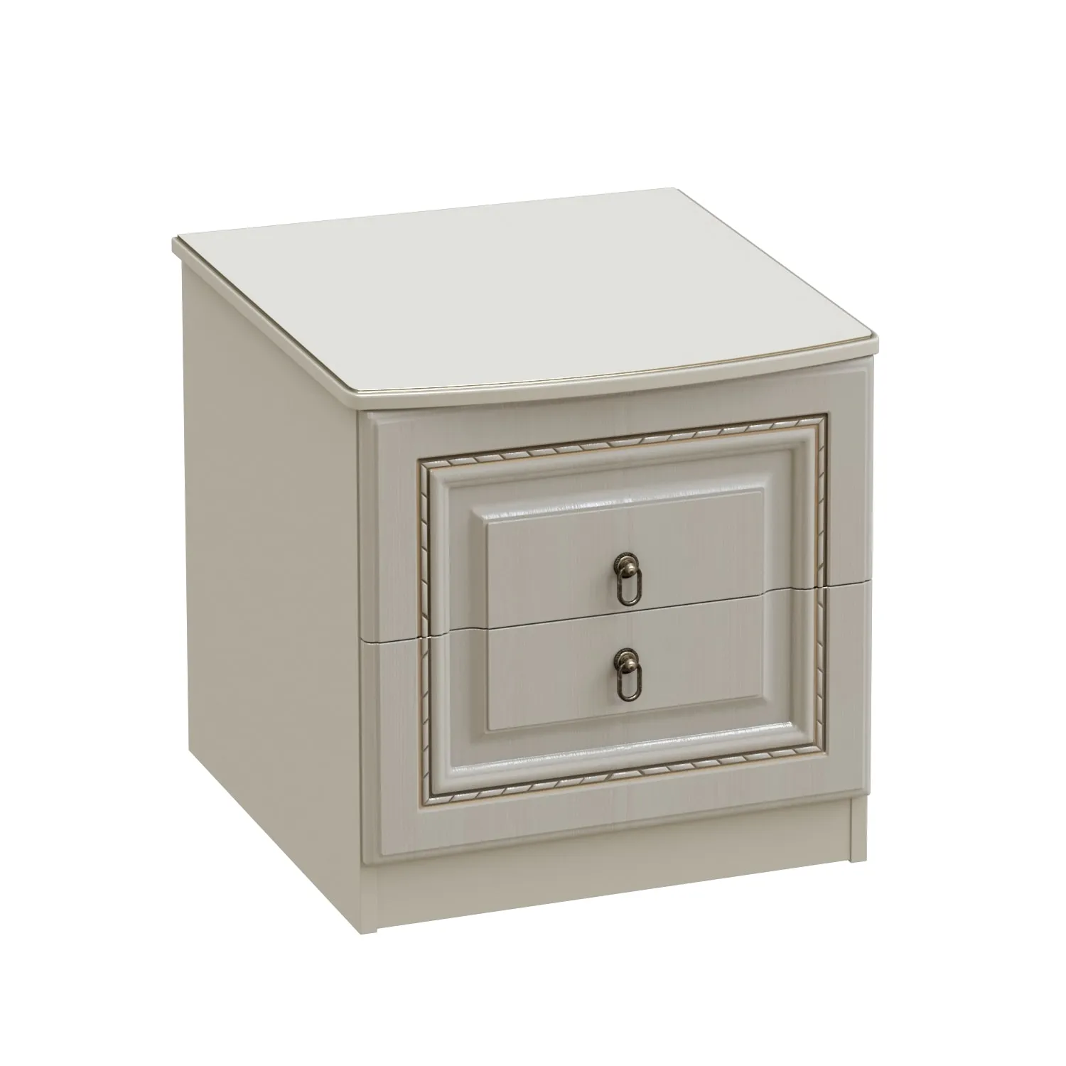 Она отличается роскошным внешним видом, оснащена двумя выдвижными ящиками, которые идеально подходят для хранения личных вещей, книг или других предметов. Фасады ящиков декорированы элегантной фрезеровкой с эффектом патины. Для удобства использования ящики оснащены металлическими ручками, имитирующими ковку.
