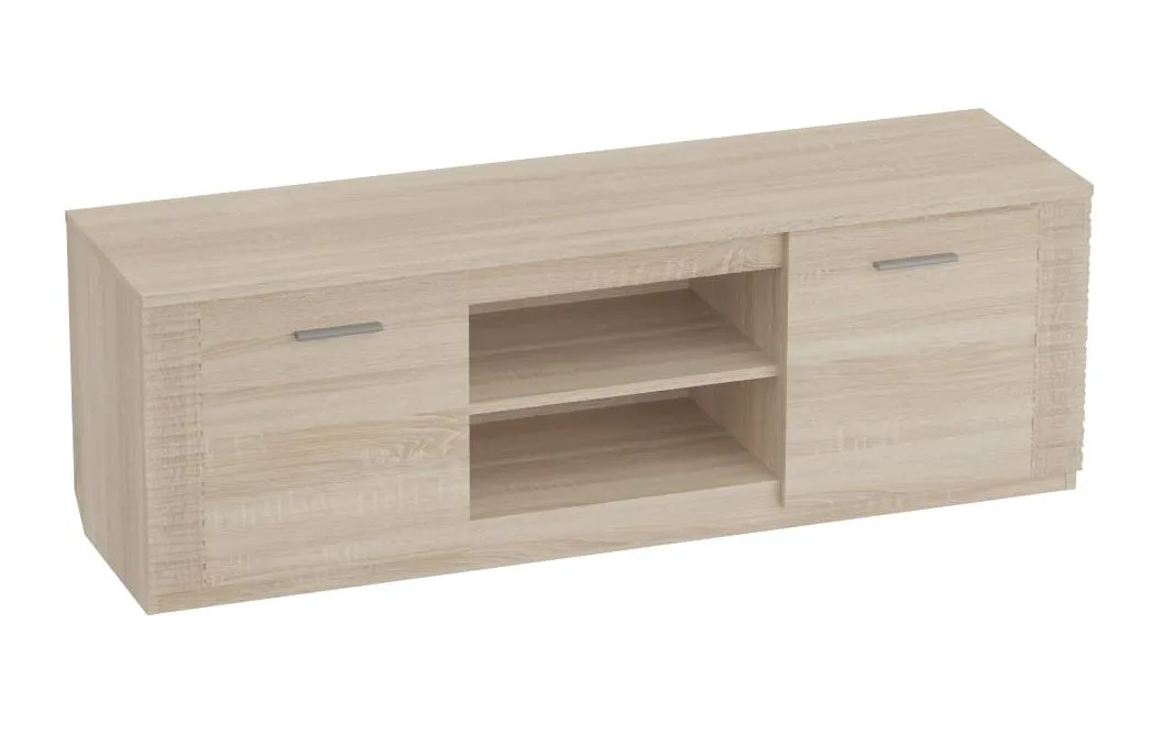 Тумба по ТВ имеет две ниши, закрытые дверцами и центральная открытая с одной съёмной полкой. Под крышкой установлена стеклянная панель для крепления светильников "HLT Prismatic FT".